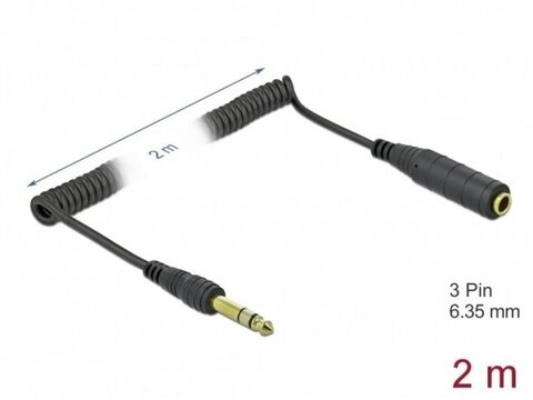 Šis Delock spiralinis stereo kabelis leidžia išplėsti 6,35 mm stereo lizdo jungtį. Dėl savo kokybės ypač tinka jungti prie garsiakalbių.