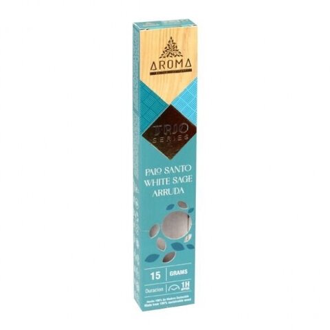 Aroma Trio serijos palo santo, baltojo šalavijo ir rūtos kvapo smilkalai. Trys kvapai vienoje smilkalų lazdelėje.