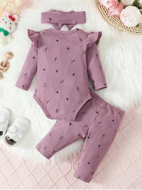 Alyvų spalvos gėlių rašto kostiumėlis dėl savo patrauklumo dažniausiai dėvimas fotosesijų metu. Visgi, tinkamas ir kasdienai. Juk kiekviena diena yra verta geros nuotaikos, o dažniausiai tokia džiugina labiau, kai dėvima apranga atrodo stilingai.