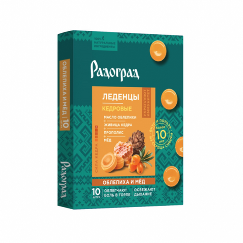 Radograd ledinukai su kedrų sakais, kedrų aliejumi, propoliu, šaltalankių aliejumi ir medumi, 10 ledinukų