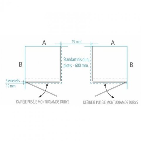 Dušo kabinos duris galima montuoti tiek dešinėje tiek kairėje pusėje.