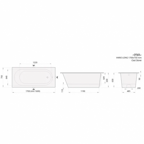 Vonia PAA VARIO L 1700x750, akmens masė, balta blizgi