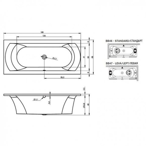 Vonios aukštis su kojelėmis: 60,5 cm.