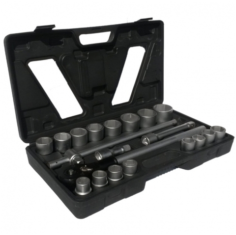 Galvučių ir rakto komplektas 3/4", Cr-V, 21 vnt, 19-50mm